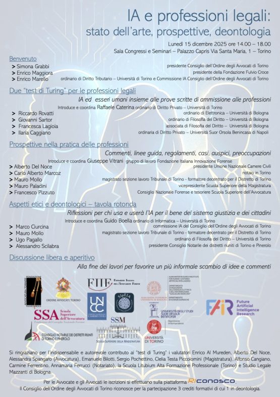 Stato dell’arte, prospettive, deontologia lunedì 15 dicembre 2025 dalle 14 alle 18 presso la sala…